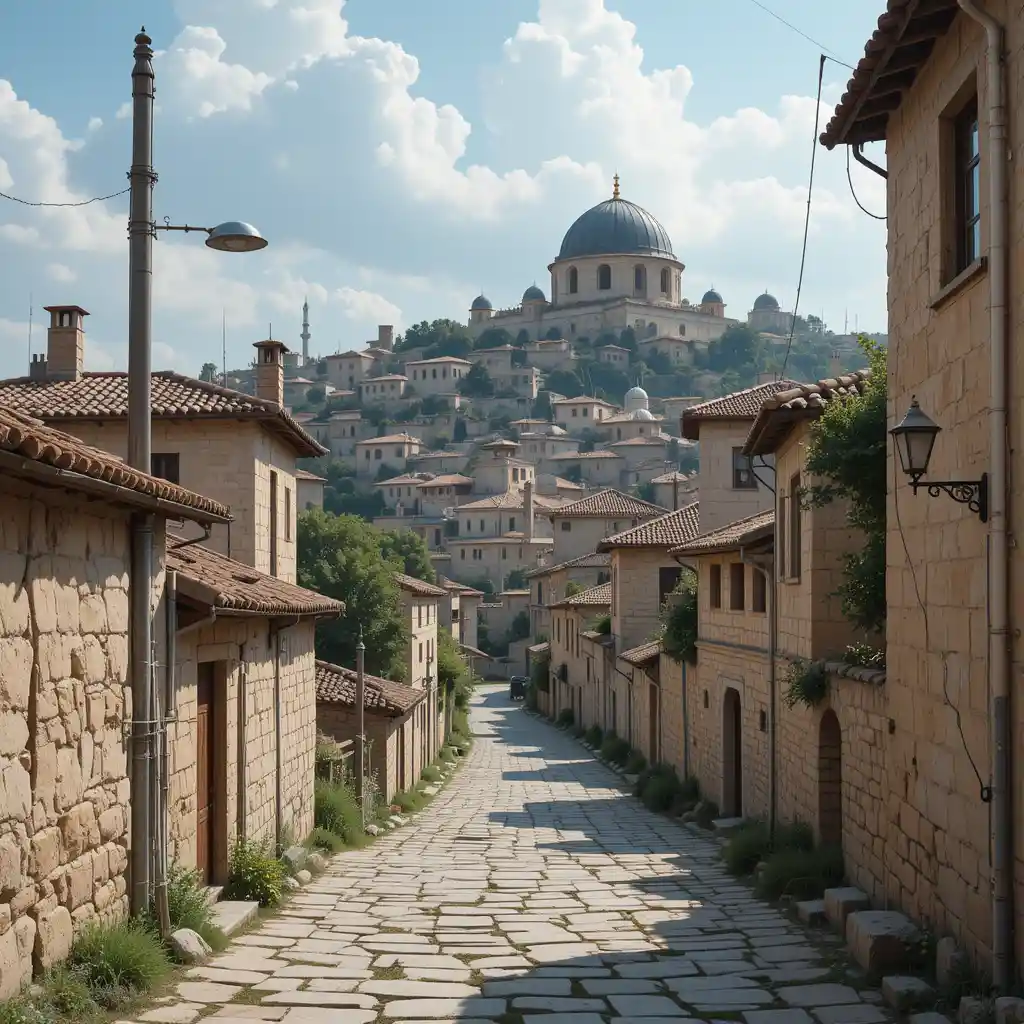 - Cobblestone streets and historic baths