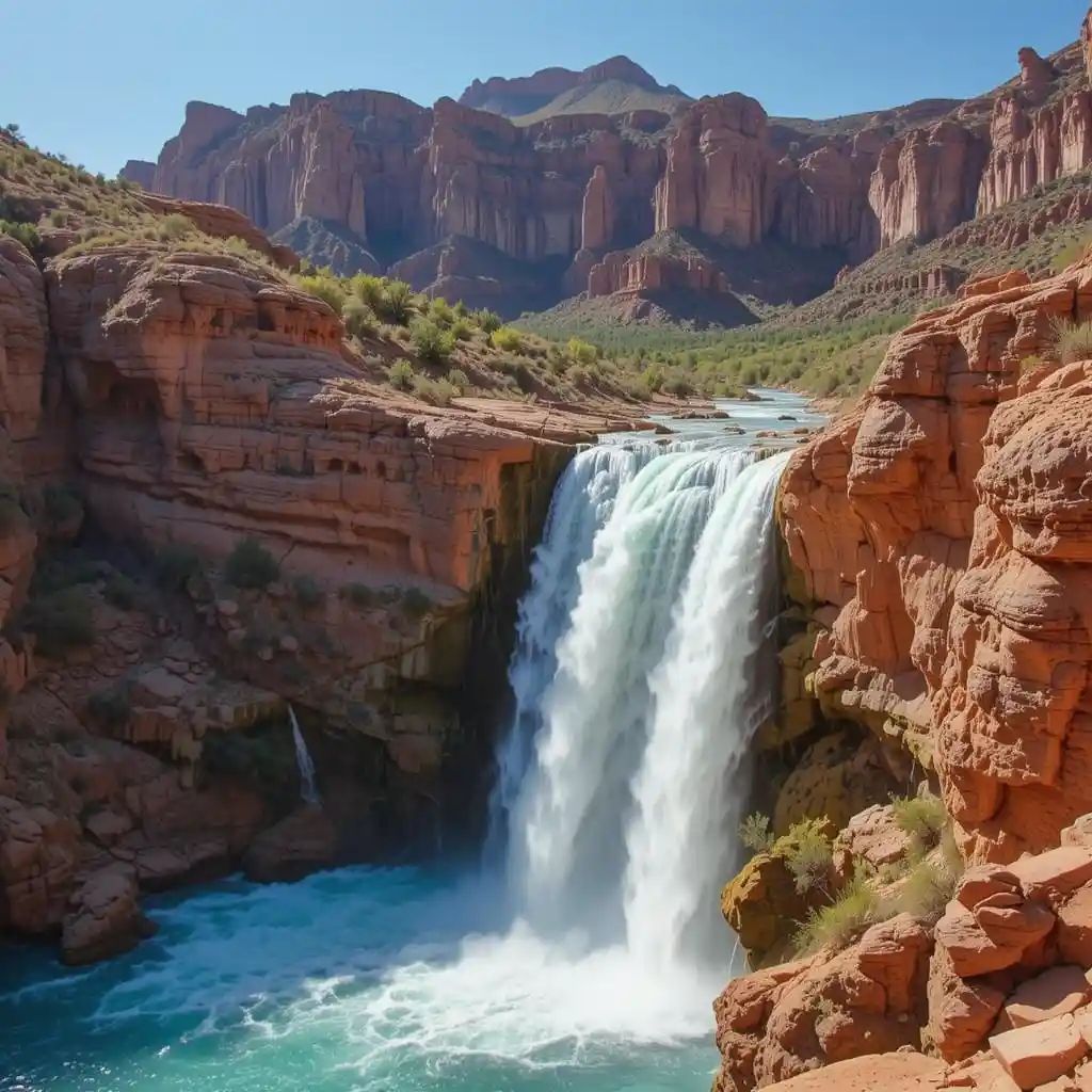 The falls are known for their vibrant blue-green water, a result of high calcium carbonate levels. It’s surreal against the contrasting orange canyon walls.